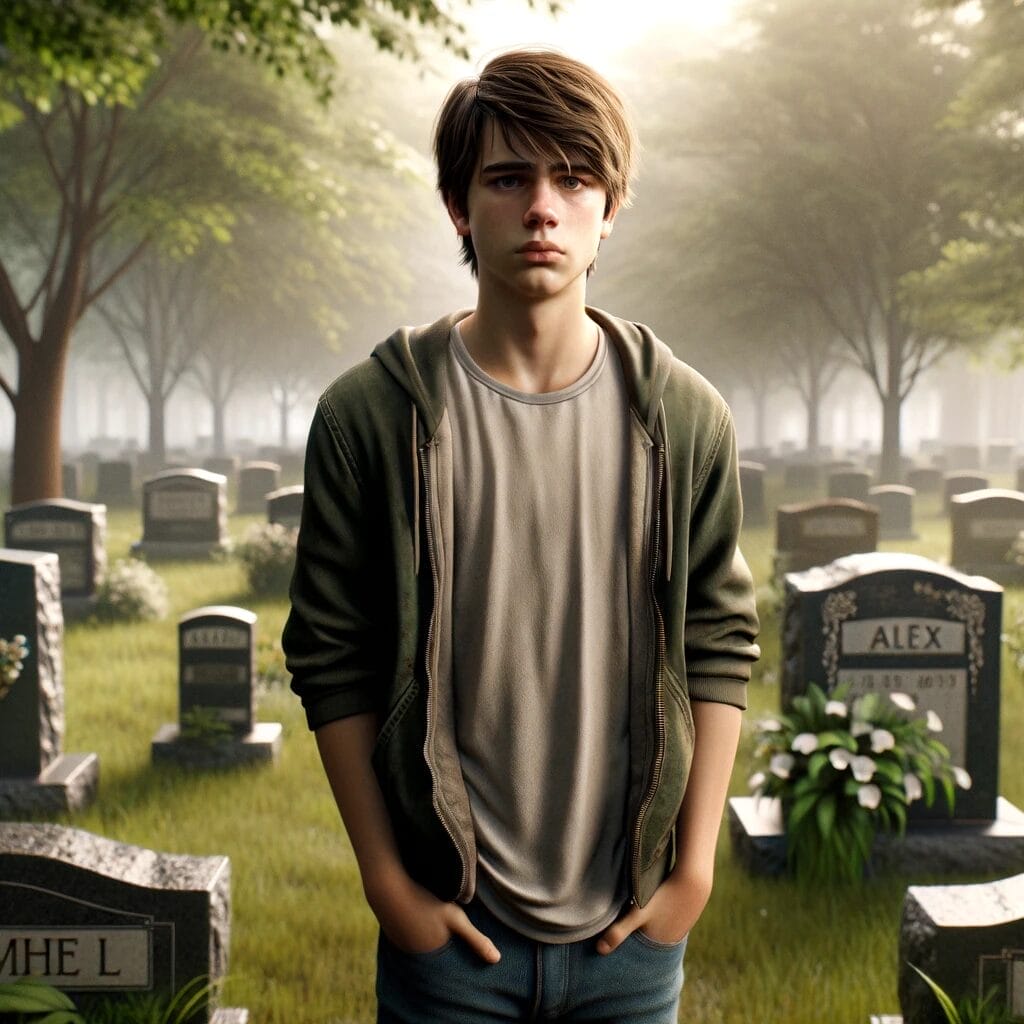 ALEX: You know, they say I should talk to you. Like it’s gonna make me feel better or something. But how can I talk to a gravestone? (Kicks at the dirt) You’re not even here. You left me. Left me with him. I’m mad, Mom. So freaking mad at you. For leaving. For not being here when I need you the most. Do you have any idea what it’s like with Dad now? He’s not the same without you. He’s… he’s just gone, even when he’s right there. I needed you, Mom. To help me figure stuff out. To deal with Dad. To deal with… life. But you’re not here. You’re just… not. And I don’t know how to handle that. I try to remember the good times, you know? Your laugh, the way you’d make pancakes on Sundays, how you’d listen, really listen. But it all just makes me miss you more. Makes me angrier. I want to yell at you, ask why you had to go. Why you left me in this mess. But… I also want to tell you… I miss you. Every day. It sucks. It really sucks. I don’t know how to do this without you, Mom. I’m trying, but it’s hard. Really hard. And Dad… he’s just… he’s lost too. We’re both just… lost. I wish you were here. To tell me it’s gonna be okay. But you’re not. And I’m here, talking to a stone. I guess I just wanted to say… even though I’m mad, I miss you. I’ll figure it out, somehow. But it’d be a hell of a lot easier with you here. Bye, Mom.